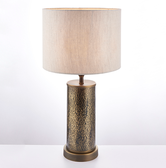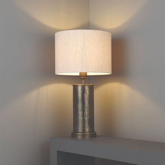 The Indie table features a hammered Antique Brass effect fitting, with natural linen effect fabric shade. A stylish fitting which would suit a variety of styles and settings.