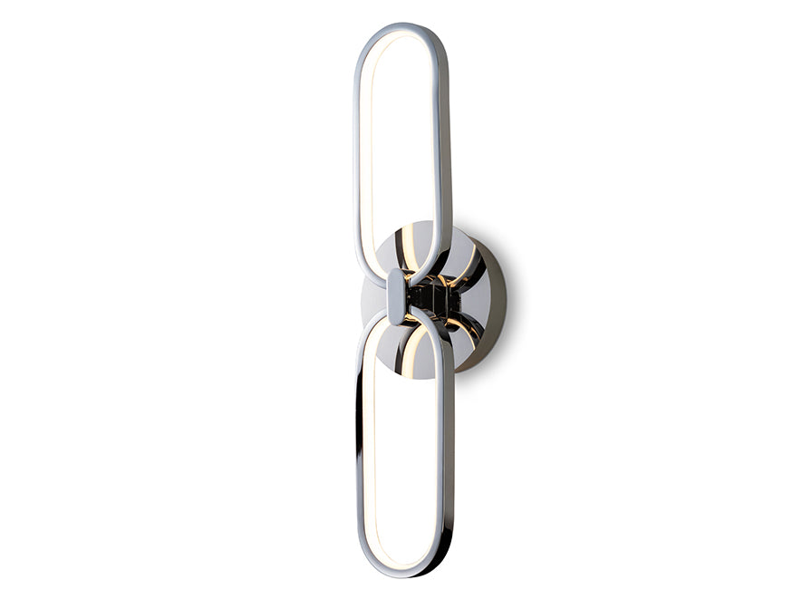 The Infinity wall light has a sleek & modern design featuring large curved hoops finished in polished chrome or rose gold finish and can be mounted in a vertical or horizontal position. The 3000k (warm white) integrated LED light is hidden behind opal silicone diffusers. 3 year electrical warranty on this product.