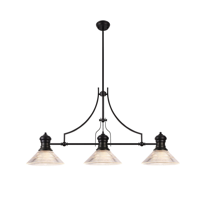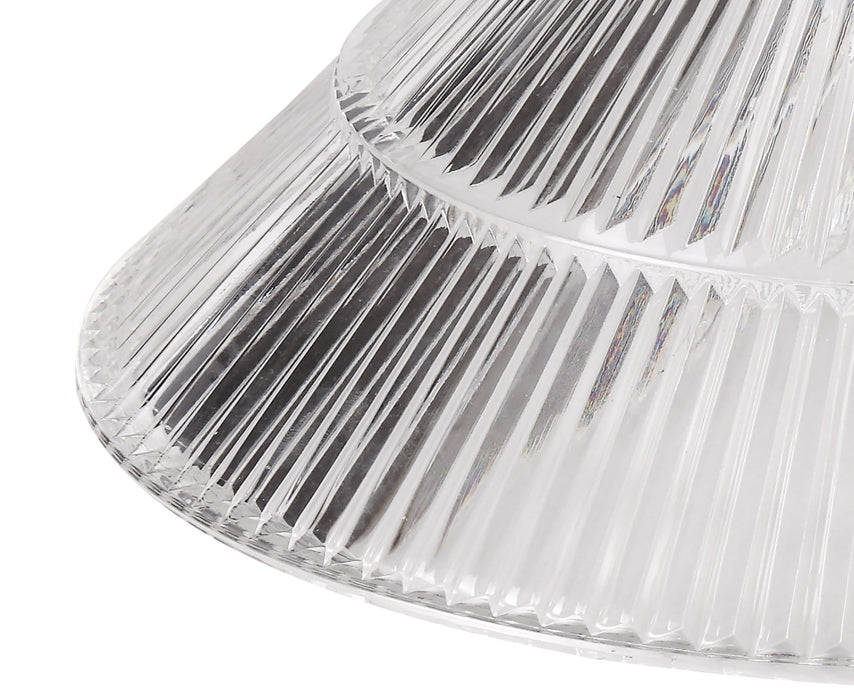 Jayme's unique shapes project a modern ambience which is partnered with traditional colour finishes to create a more contemporary collection. The Jayme ribbed cone glass shade fits perfectly onto our Jayme metal frames to create a striking pendant of your choice of colour. Pictured on the Jayme black bar pendant, options are to be selected separately for the complete item.