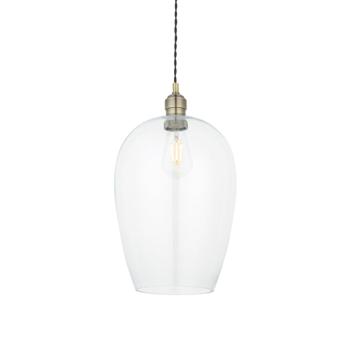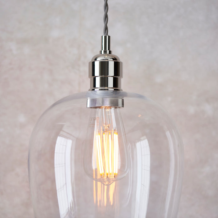 Jenner is a small collection of single glass pendants, with a rustic vintage touch lamp holder. Finished with twisted fabric cable. Finished with either Antique Brass or Polished Nickel lamp holders and ceiling rose.