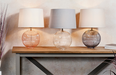 A striking and shapely table lamp base with a distinctive clear, or soft smoked grey ribbed glass. Jessica will blend in beautifully with most interior styles. Complement with a soft pastel or vibrant shade to complete the look - Shown with a 14" shade. Head over to our SHADE PAGE to find your perfect match. Bold, bright or pastel - the choice is totally yours!