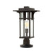 The Lazio pedestal features a clean design with angular frame with clear bevelled glass panels in a oil rubbed bronze finish. Matching items available.