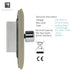 Height 88mm / Length 88mm / Width 35mm / 5W - 150W Load / 120W Tungsten per dimmer / Class 2 (Double Insulated) / (35mm Back Box Required)