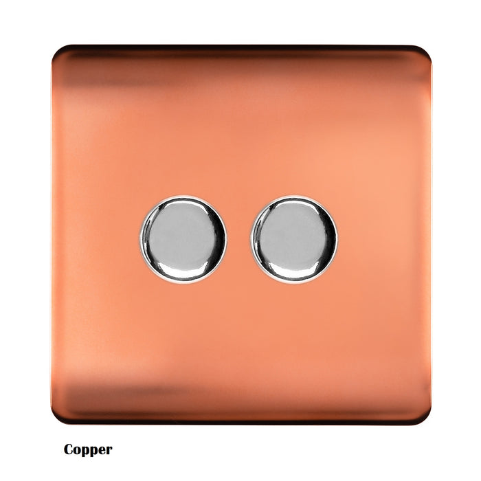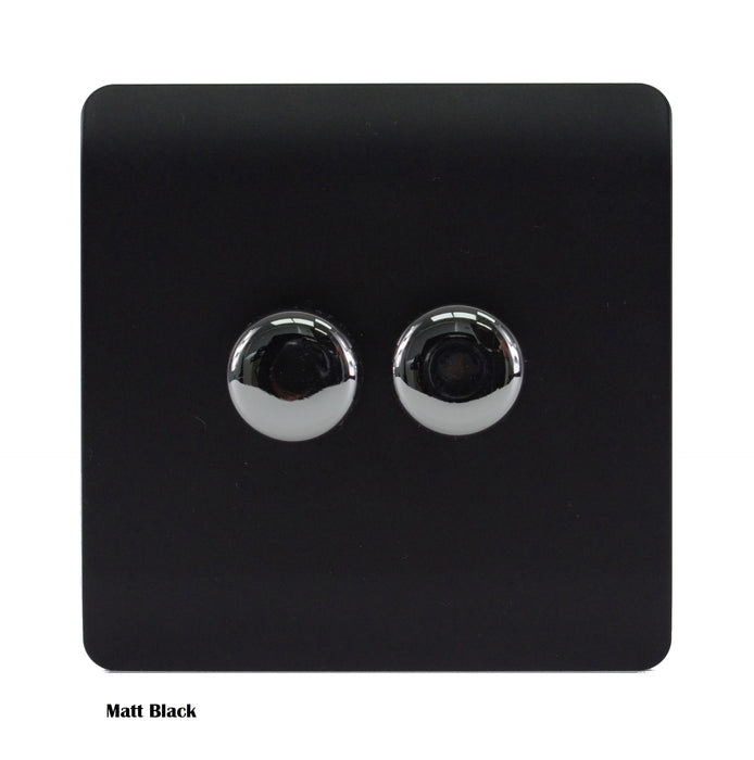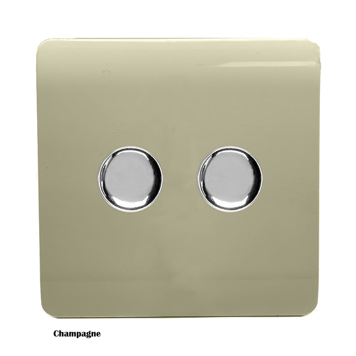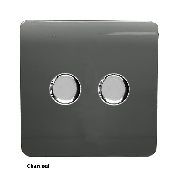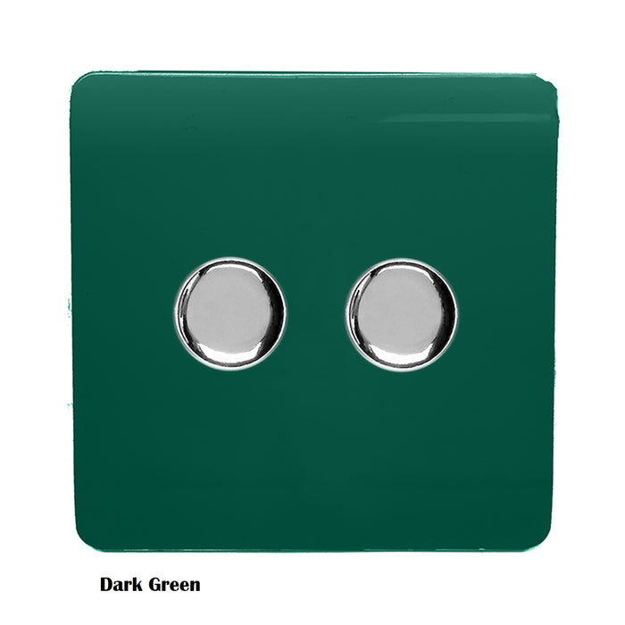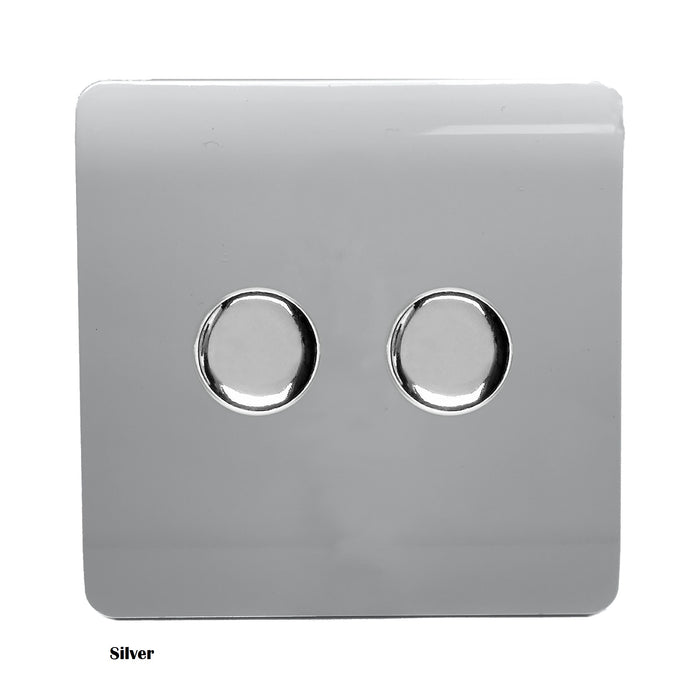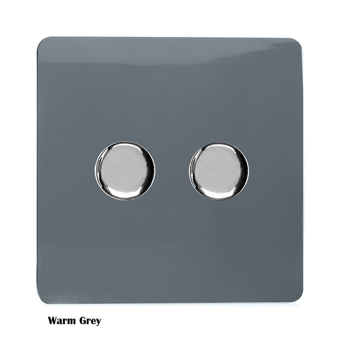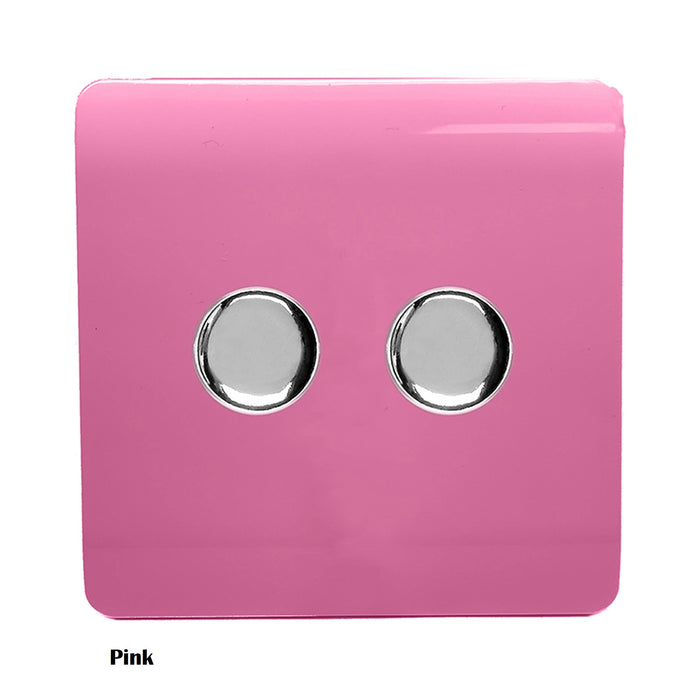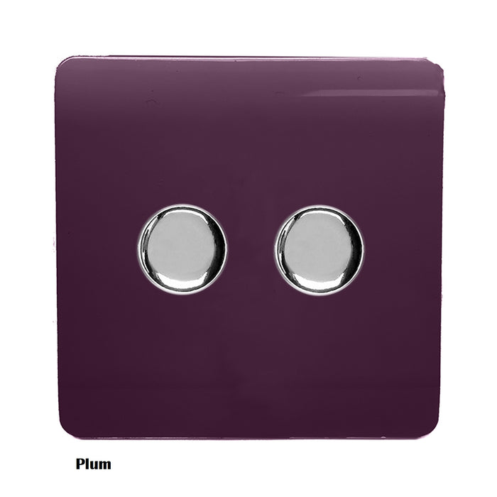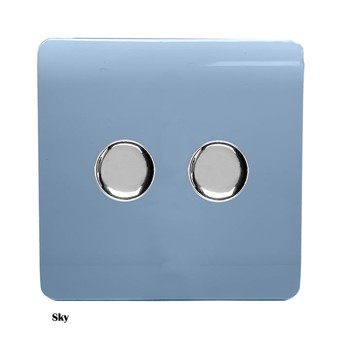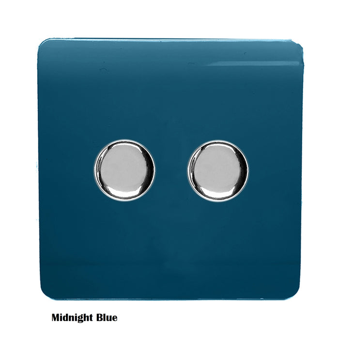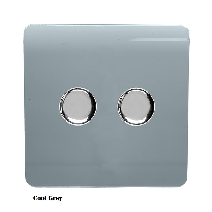 2 gang, 2 way LED dimmer switches available in a vast range of colours to cater for any colour scheme and décor. Elegant, seamless design, retro re-fit and manufactured in the UK giving you full confidence in the innovative engineering that puts this range of products in a league of their own.