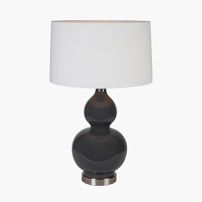 Our uniquely shaped Livorno table lamp is truly striking and is curvaceous in all the right places, this lamp looks great when stood alone or in a pair. Complete with a crisp white cotton shade, this table lamp screams luxury. Available in a black & gold finish or grey & silver finish