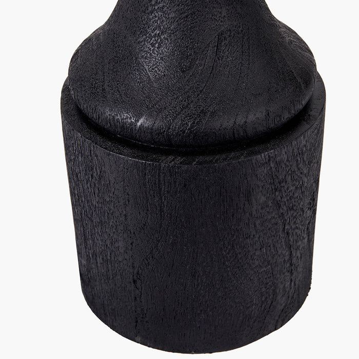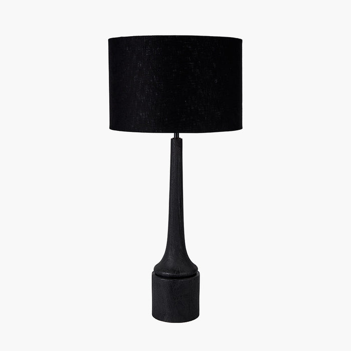 This tasteful black table lamp has the monochrome trend covered. Its the perfect addition to any room. Hand-finished in India, Its textured mango wood base and slender silhouette make for an elegant, stylish piece. Pair with a matching black linen lamp shade or add a pop of colour with a contrasting coloured shade. Matching floor lamp also available