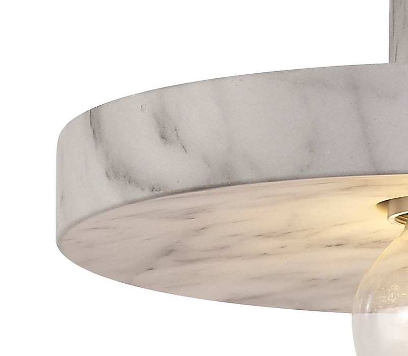 This modern single pendant design uses a smooth, round, shallow frame to hold the E27 lampholder providing substantial presence with its rare wood or marble effect finish without impeding the ambient illumination from the chosen lamp. Malmö's concept permits the maximum lighting output without compromising unique design.