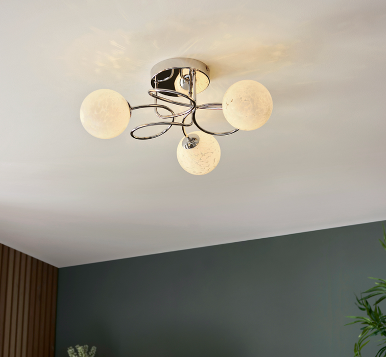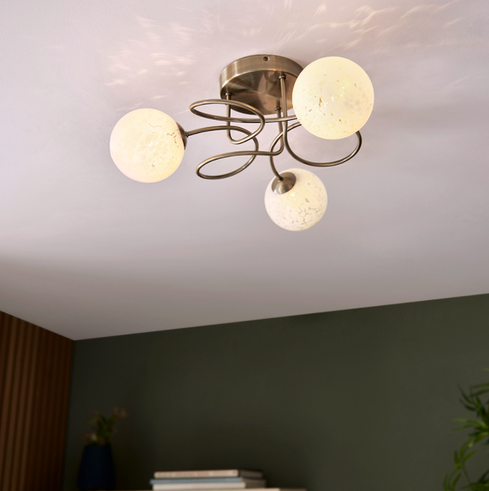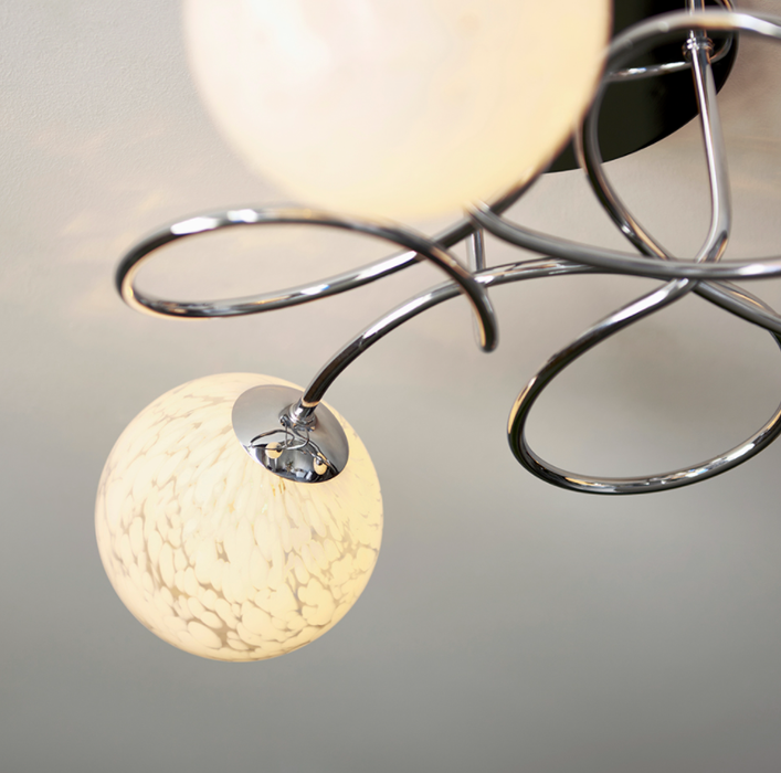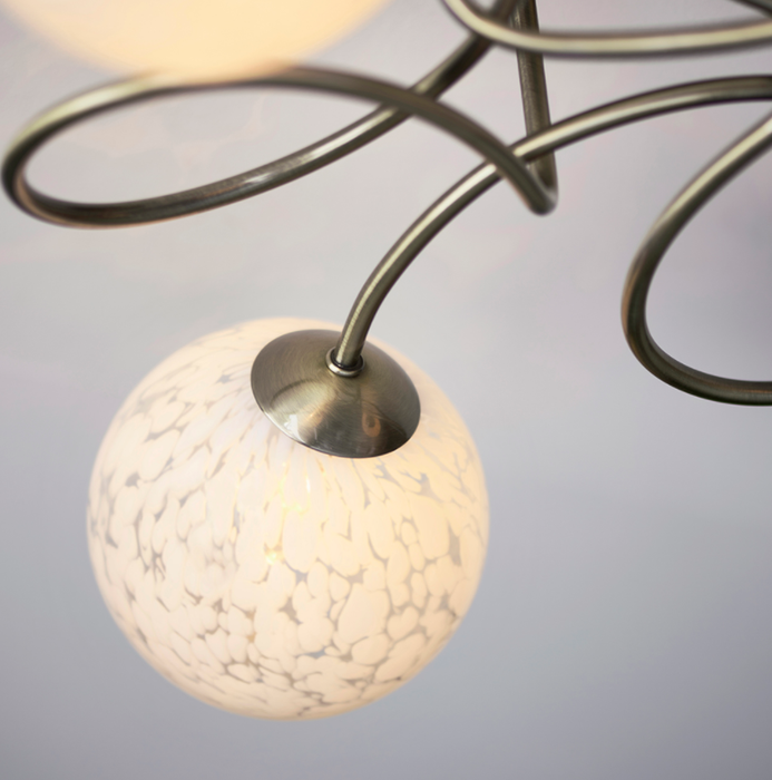 The Malten ceiling lights feature intricate metal framework finished with confetti-like glass shades. The mix of clear and opal glass allows for a creative and unique finish.