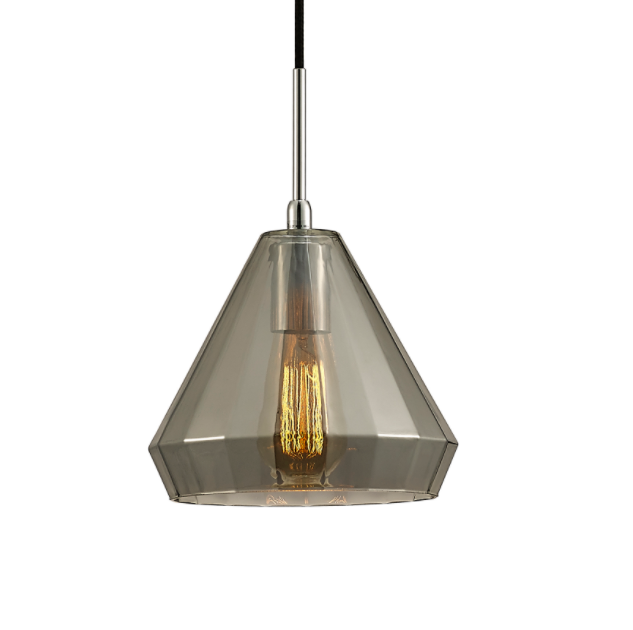 The Marcus pendant is a sleek industrial-esque range of lighting solutions. With crisp smoked glass and high polish chrome fixings, it will make a great statement above a dining area, island, or a fantastic alternative to a bedside light. Available in 3 striking shapes : Cone, Pyramid, and Shallow.