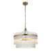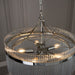 Beautiful contemporary interpretation of the chandelier in polished nickel chrome or antique brass finish. Decorative clear glass rods diffuse the light to create an inviting ambience. The chain can be adjusted to suit ceiling height and allow it to be perfectly hung above dining tables or in living spaces. Matching items also available to create a cohesive look (see link below). Available in a 3 light or 5 light pendant. Dimmable if using dimmble bulbs.