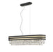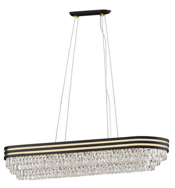 The Mateo is a unique and bold take on a crystal pendant. With a thick black and gold border and soft cornered rectangular crystals, this eye-catching fitting will take centre-stage. The oblong bar comes in two sizes and the range also has a semi flush and round pendant to match. This is a Class 2 (Double-Insulated) fitting.