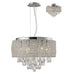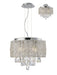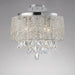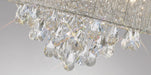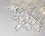A mass of intricately twisted aluminium wire creates the outer body that elegantly masks the inner cascade of octagon crystal strings finished with large pendalogues. Mounted on a Polished Chrome plate, with stunning drops of crystal to bring sparkle to a unique centre body.  Available in a 4 or 6 light pendant that can also be mounted as a semi flush ceiling fixture, ideal for lower ceilings. Dimmable if using dimmable lamps