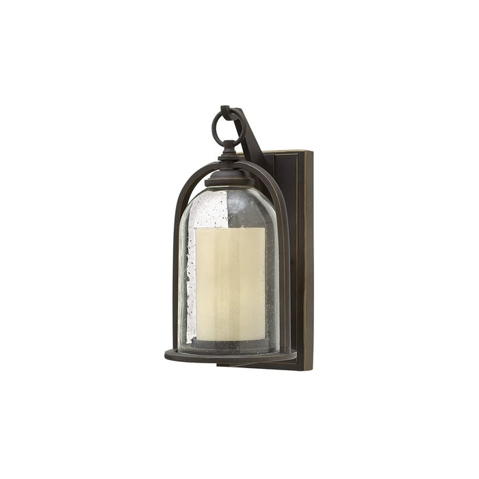 The Mirren outdoor wall light has a feature bell shaped seeded glass shade which encloses a cream coloured cylindrical glass shade to recreate a candle effect. The oiled rubbed bronze metalwork compliments the glass colour perfectly. Available in 2 sizes.