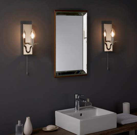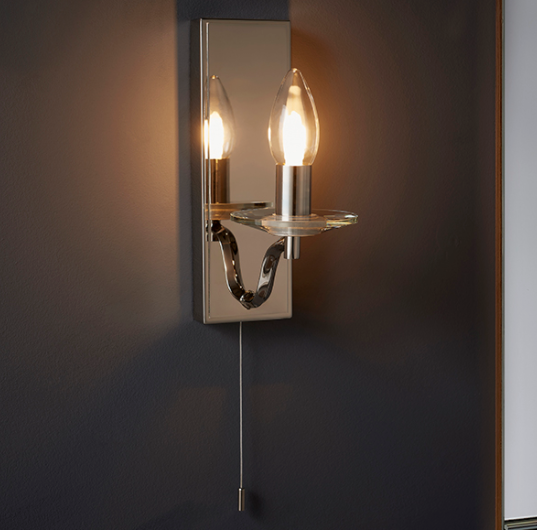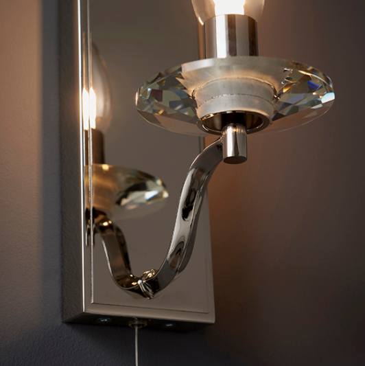 The Murphy is an Exclusive Light - This beautiful nickel wall light features a crystal sconce. Against the plain frame it is a classic, luxury fitting. Sure to add a beautiful touch to your bathroom or ensuite. IP44 Rated