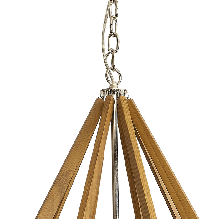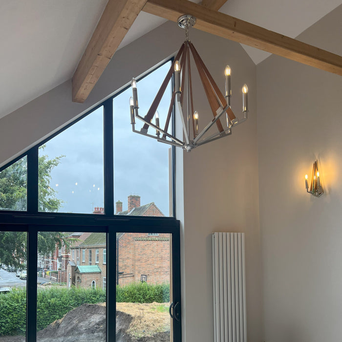 The Nicola is a beautiful, luxurious collection of lights, finished in natural wood and polished nickel / chrome metal work. It's vintage-inspired shape suits many styles of decor - from the more traditional, to a contemporary boutique look. It can also be converted to semi-flush for an incredible room centre piece.