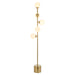 A timeless and modern design floor lamp, at home in modern or classic interiors. The on trend brushed brass finish, with gloss opal glass shades, makes for a luxury modern touch to your home. It has an in-line on/off foot switch with a two metre black flex.