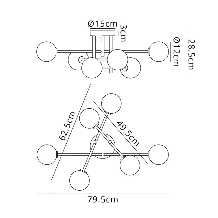 Height 28.5cm / Length 79.5cm / Width 62.5cm / 6 x G9 lamps required