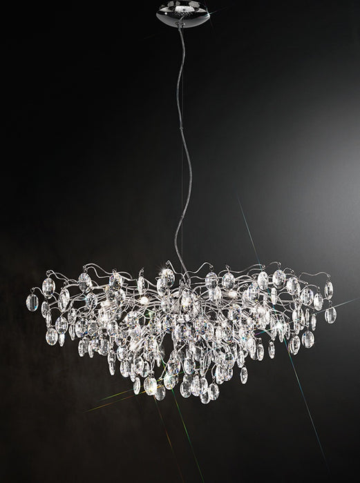 The Riley range uses fine chrome arms to display an array of crystal droplets - in an artistic fashion. Creating a fabulous centre piece to your room - with matching wall lights for added style.