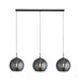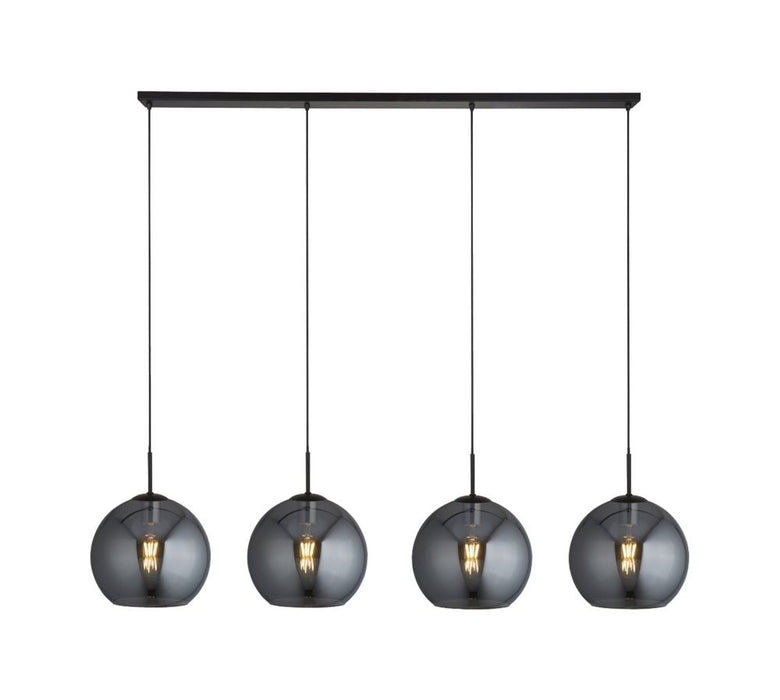Striking matt black framed bar with black braided cable (not clear as shown in image) and smoked glass globes. Height adjustable (see below for sizes). We recommend teaming this with a vintage filament lamp to give it a retro feel...