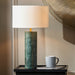 This stunning marble table lamp with inlaid gold metal detail is perfect for any contemporary home. Complete with a textured cotton cylinder shade in white makes a real statement. Available in green or white marble finish.