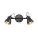 A double wall spotlight in matt black with decorative gold cable covers. The interior surface of each shade is finished in gold. This fitting has 2 rocker switches t work each light independantly. The heads are fully adjustable. Dimmable if using dimmable lamps.