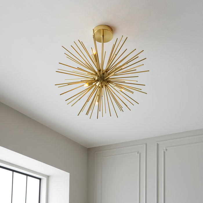 Siren is a small collection of Sputnik-inspired lights. The retro vibe of the metal spokes is very on-trend and would suit many decor styles. The 6 lamp holders make room for plenty of light. So it's stunning and practical for your space. While the beautiful matt gold finish gives a luxury, quality feel. This fitting is Class 2 (Double Insulated)
