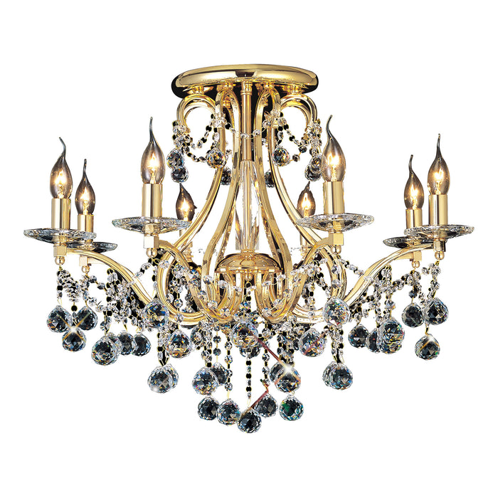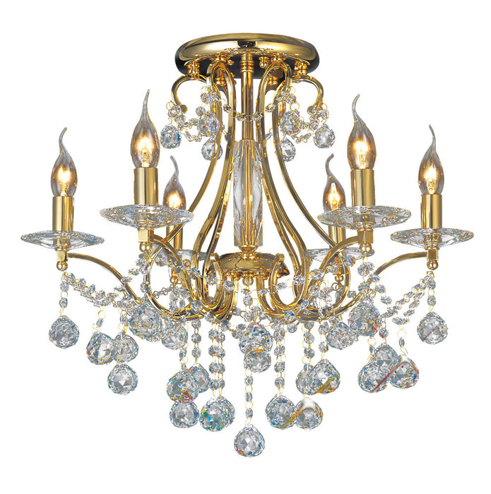 Sophia is a delightful range which is flush mounted to the ceiling making it ideal for lower ceilings. This range is available in Polished Chrome and Gold finish with Asfour crystal. The fittings are further enhanced by the generous amount of crystal spheres and strands, crystal sconces and a crystal centre body. This fitting is available in 3, 6 or 8 light versions and is dimmable if using dimmable lamps. Part of a large product range and sister range to the Gemini collection. The height detailed below is to the bottom crystal, these can be shortened if required to allow more clearance to walk under the light.