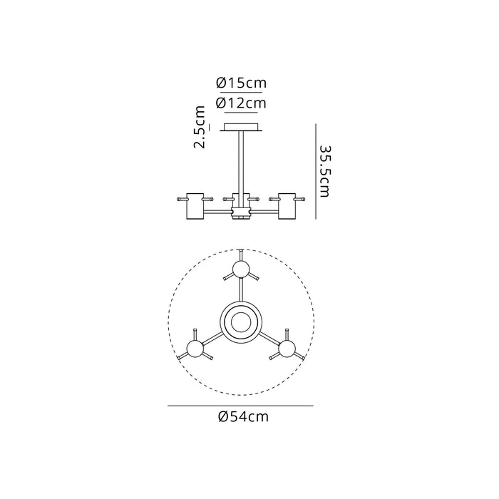 3 Light | Height 35.5cm / Width 54cm / 3 x E27