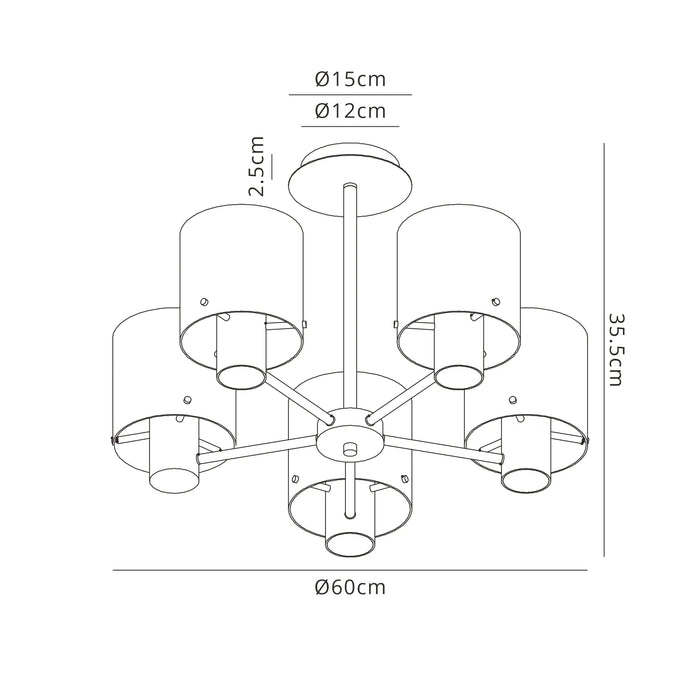 5 Light | Height 35.5cm / Width 60cm / 5 x E27