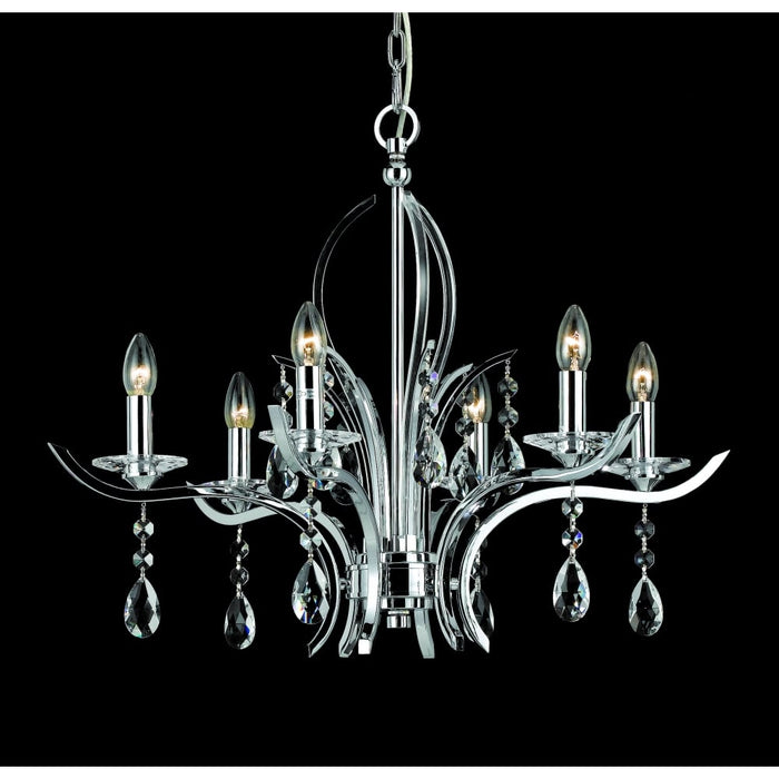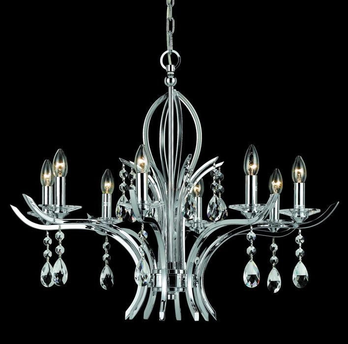 The Venice is a classical design with an elegant style with striking crystal droplets. Available in a 6 or 8 light design with matching double wall light available. Also available in gunmetal or polished chrome finish. Height adjustable & dimmable if using dimmable lamps.
