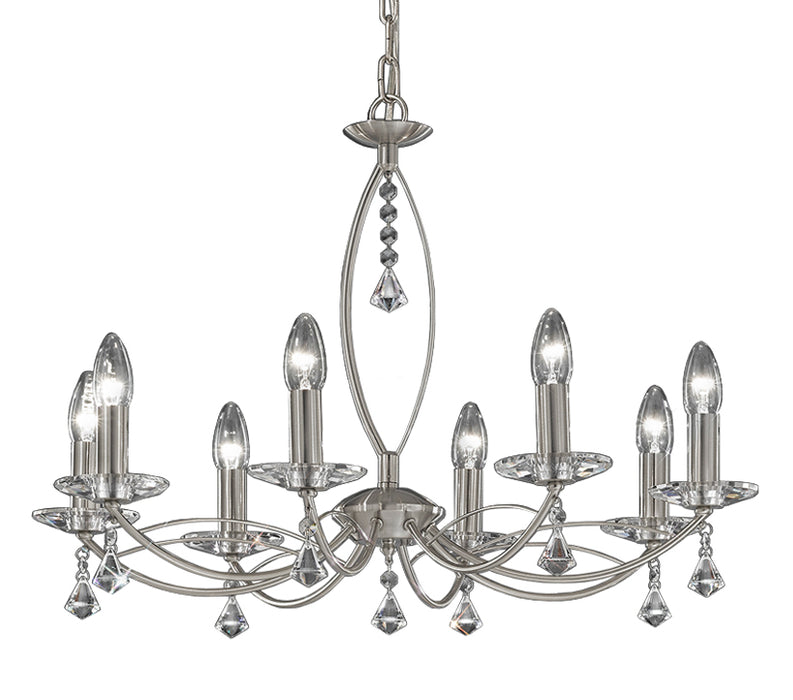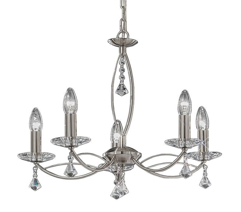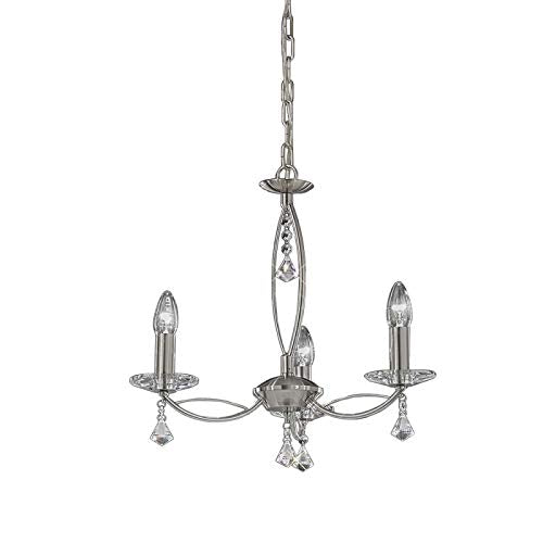 Simply Elegant. The Emile has light, delicate arms, finished with crystal sconces and crystal droplets. A wonderfully charming fitting. Available in Satin Silver or Antique Brass.